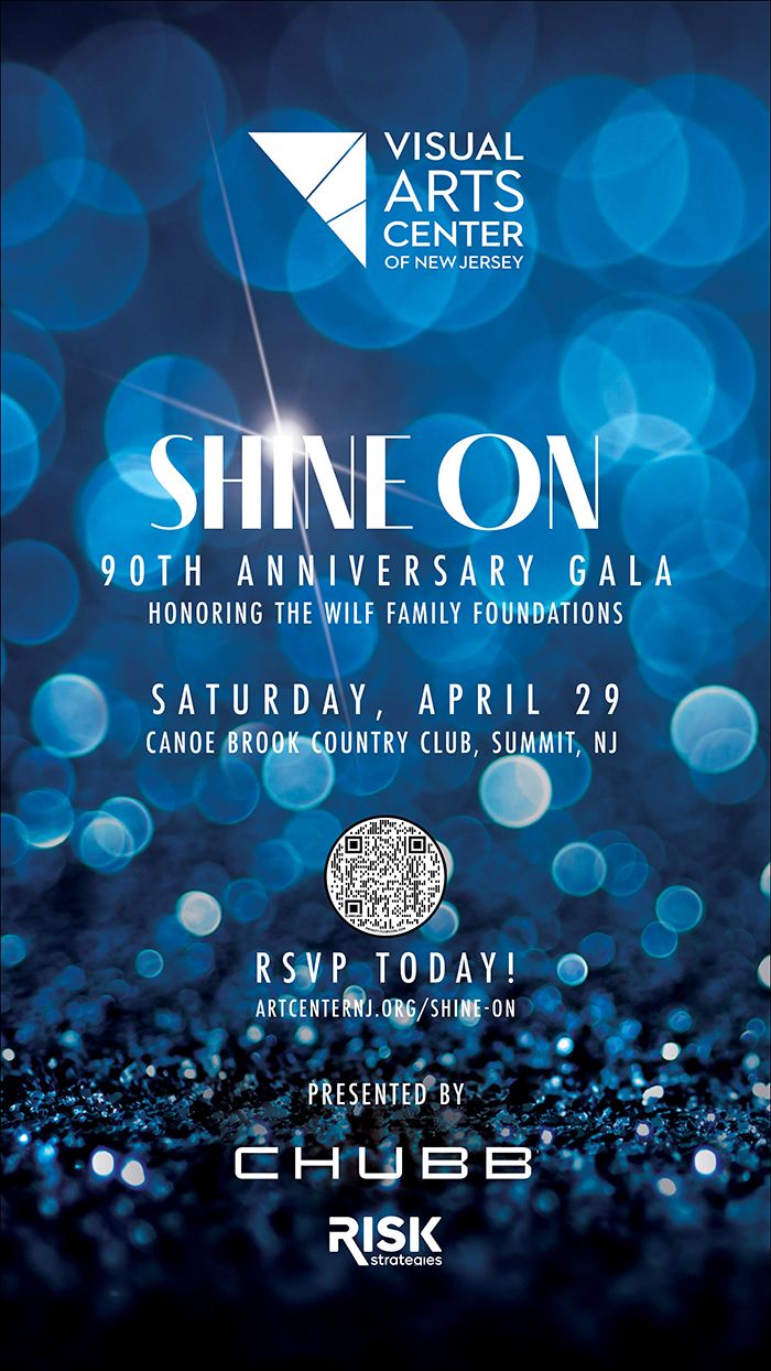 The Visual Art Center of New Jersey’s 90th Anniversary celebration continues as the Art Center prepares for its annual spring gala at Canoe Brook Country Club in Summit on Saturday, April 29. The Shine On: 90th Anniversary Gala, presented by Premier Event Sponsors Chubb and Risk Strategies, is the highlight event of the year-long celebration and will feature live music by Art-Strings Ensemble, a festive cocktail hour, a delicious seated dinner, and the Art Center’s signature silent auction of exciting contemporary art. In addition, celebrity auctioneer, C.K. Swett, will return to host a thrilling...