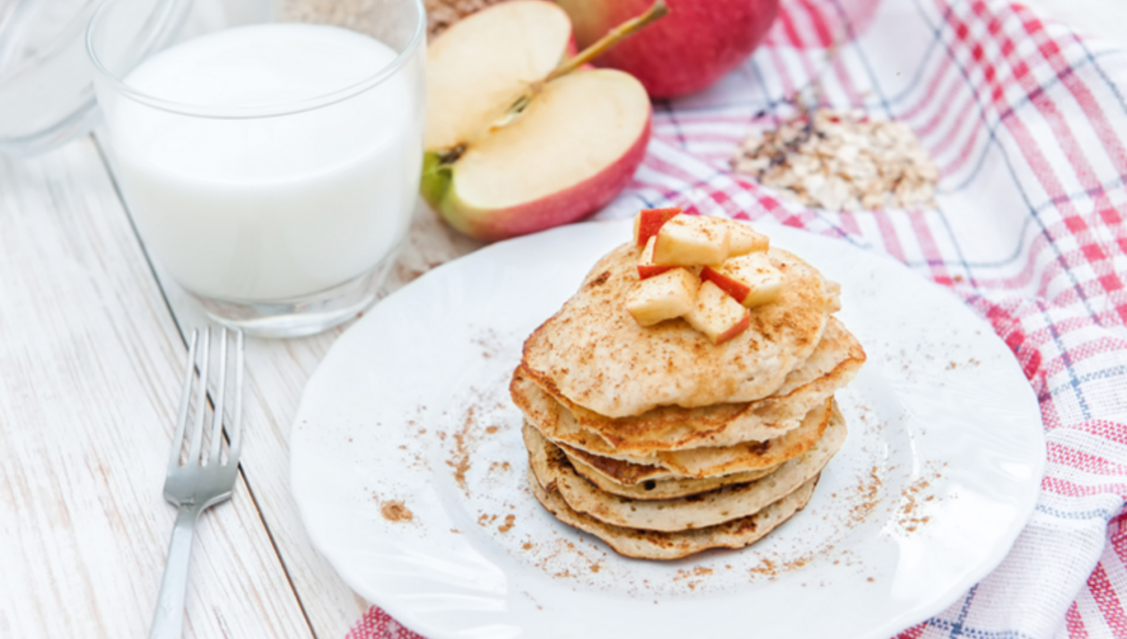 This tasty fare consists of typical pancake ingredients plus apples, cinnamon, and cider vinegar for an extra flavor boost.