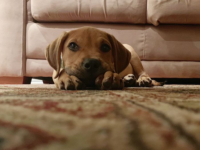 Impulsively in 2019, we rescued Theo from a local foster in Cranford as a surprise for our kids. He was one of five “Labrador-Doberman Mix” puppies that were rescued from the Carolinas during Hurricane Dorian. He came to us crate-trained, housebroken, and in fact an American Foxhound at 11 weeks old.