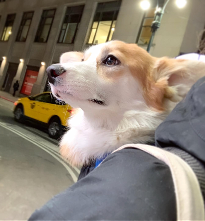 We both grew up with dogs and have always wanted one of our own when the timing was right. Nicole fell in love with Corgis, their goofy personalities and adorable fluffy butts. We were so happy to get Minion from Ohio and she flew to NYC to meet us!