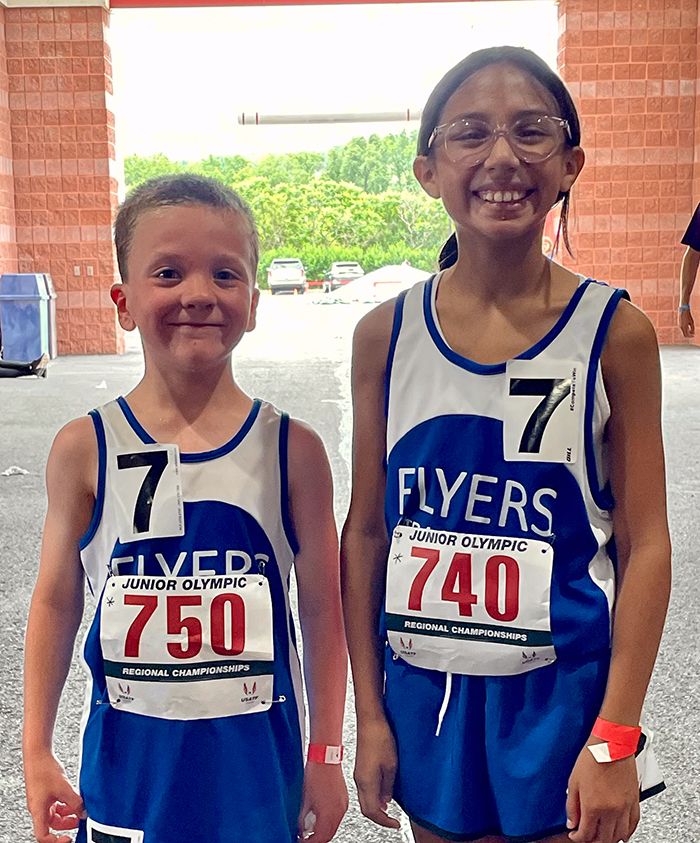 Grayson Van Dyk (left) and Katalyna Aguilar (right) two qualifiers for the 2023 USATF Junior Olympic National Championships in the 1500m run.