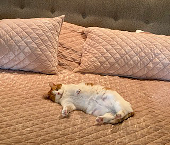 a rescue cat who will smother you with cuddles, while keeping her “boss” of the house status.