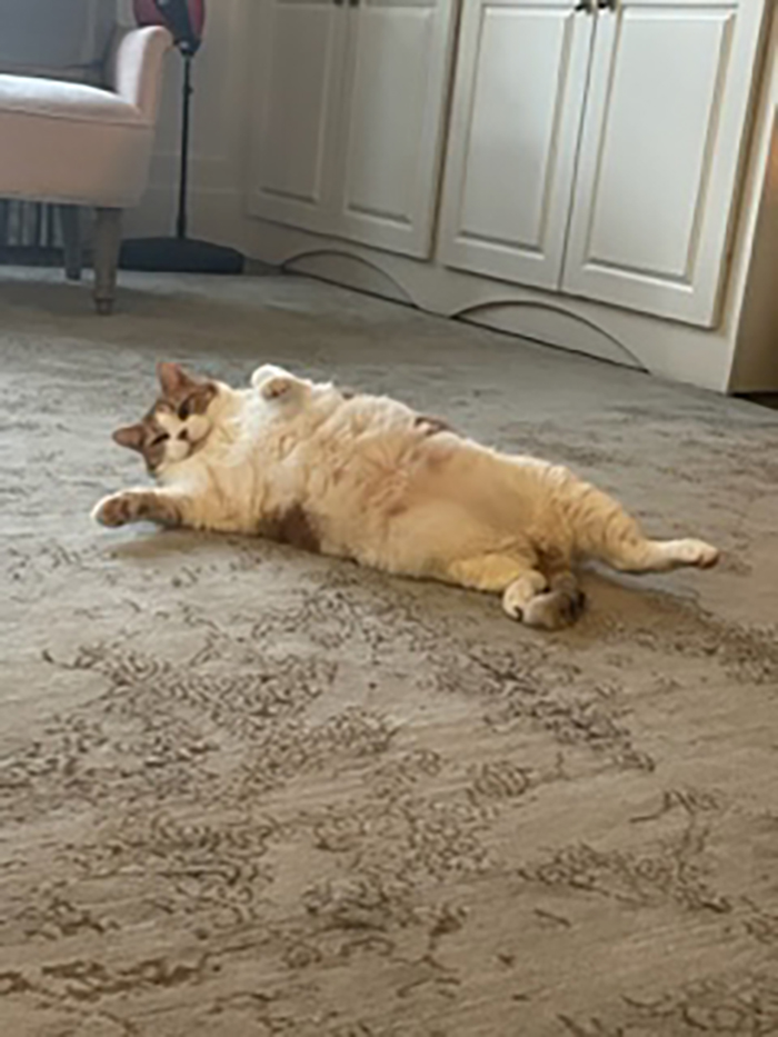 Pickles, who for the first year of us having her, was the normal size of a cat, over time, if she felt that she did not get enough food, she would follow you around the house meowing. Now she has gotten bigger, (and cuter) because of it.