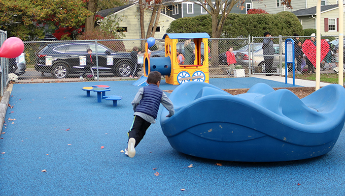 Following 8 months of meticulous planning that included more than $135,000 raised from over 200 generous donors, members of the Westfield community gathered at the Lincoln School Early Childhood Learning Center on November 13 to officially reopen its two playgrounds, newly renovated to provide more accessible play for students of all abilities.
