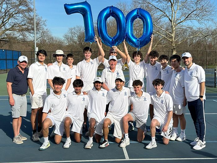 Westfield High School Boys Tennis Coach George Kapner (center) reached a remarkable milestone with his 700th win on April 9, 2024.