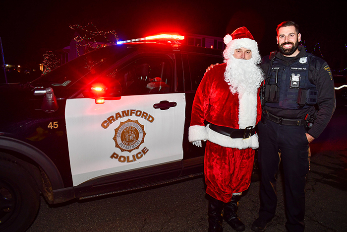 The Cranford Police and Fire Departments, along with the Cranford Police Auxiliary, provided escorts for Santa’s visits, adding to the festive atmosphere.