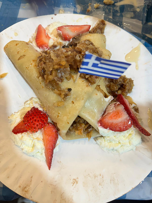 - an assortment of delectable Greek cuisine, such as mouthwatering gyros, souvlaki, spanakopita, baklava, loukoumades and other traditional homemade Greek delicacies.