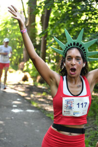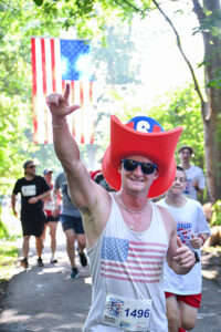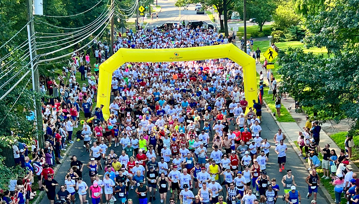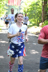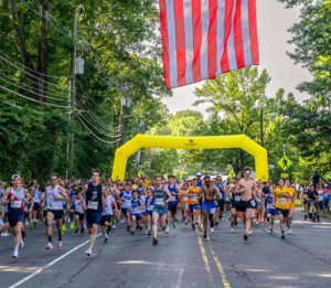 Many runners wore red, white, and blue gear to mark the patriotic holiday. Proceeds benefited the Jaycees’ scholarship fund, which awarded $50,000 in June to Cranford students attending college and trade schools.