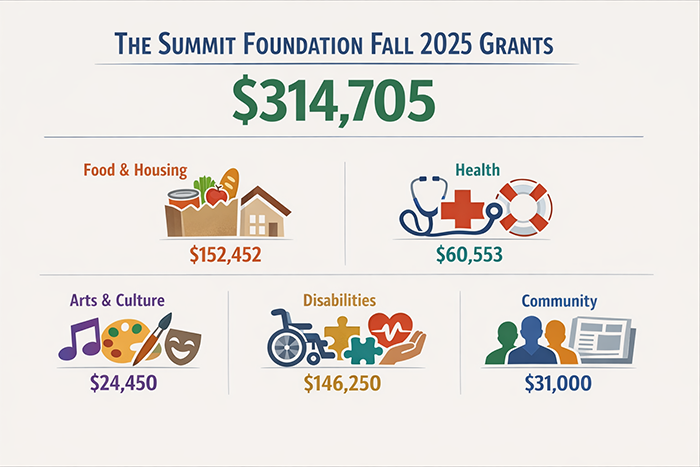 In Fall 2025, The Summit Foundation awarded $314,705 in grants to local nonprofit programs that strengthen food and housing security, enrich arts and culture, support people with disabilities, improve healthcare services, and promote well-being for people living in the Summit area.